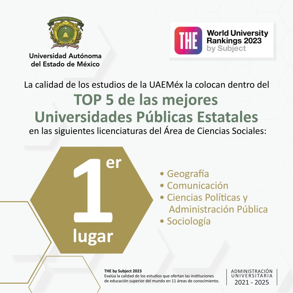 La Universidad Autónoma del Estado de México figura como una de las mejores Universidades de acuerdo al World University Rankings 2023 realizado por Times Higher Education.