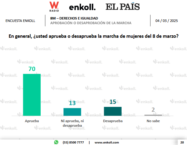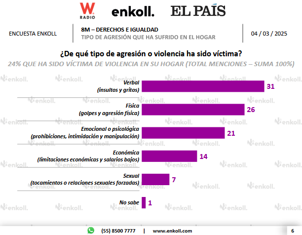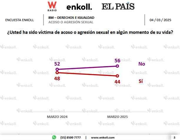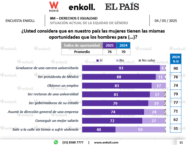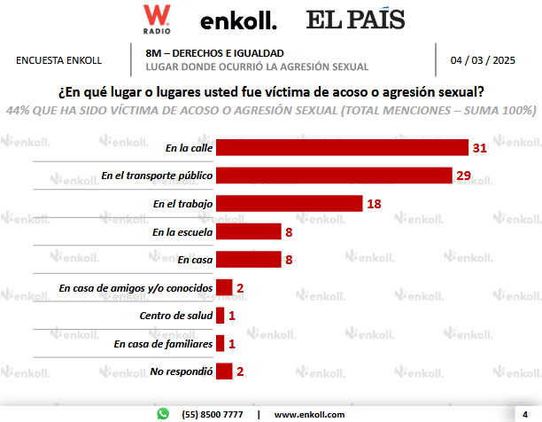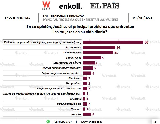 Previo a la conmemoración del 8M, Enkoll, en colaboración con W Radio y El País, realizó una encuesta en función del 8M y los derechos e igualdad de las mujeres en México.