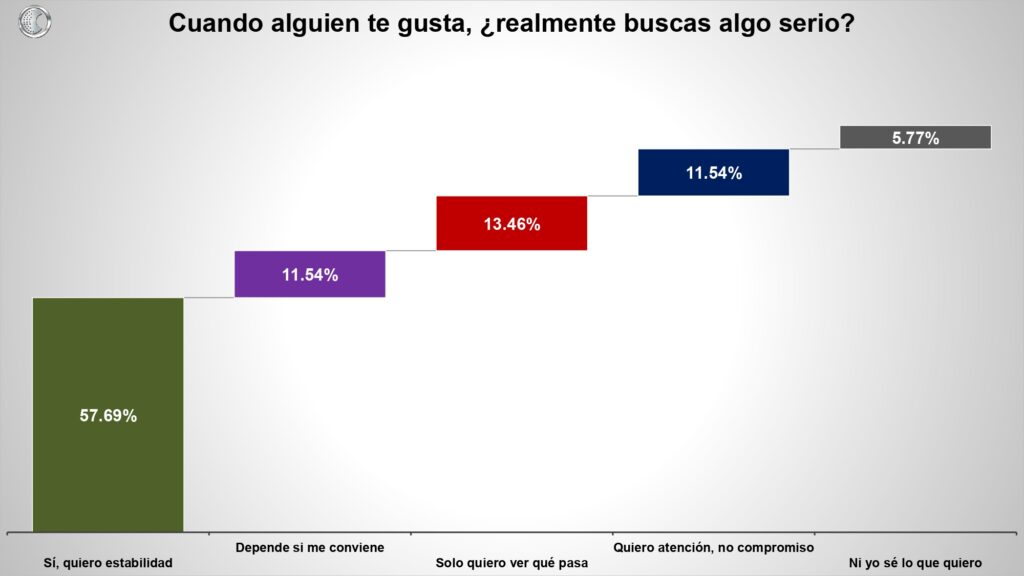De forma complementaria se observa que más de la mitad afirmó que “busca estabilidad cuando alguien le atrae físicamente”. Es decir, la estabilidad sigue siendo una aspiración dominante.
