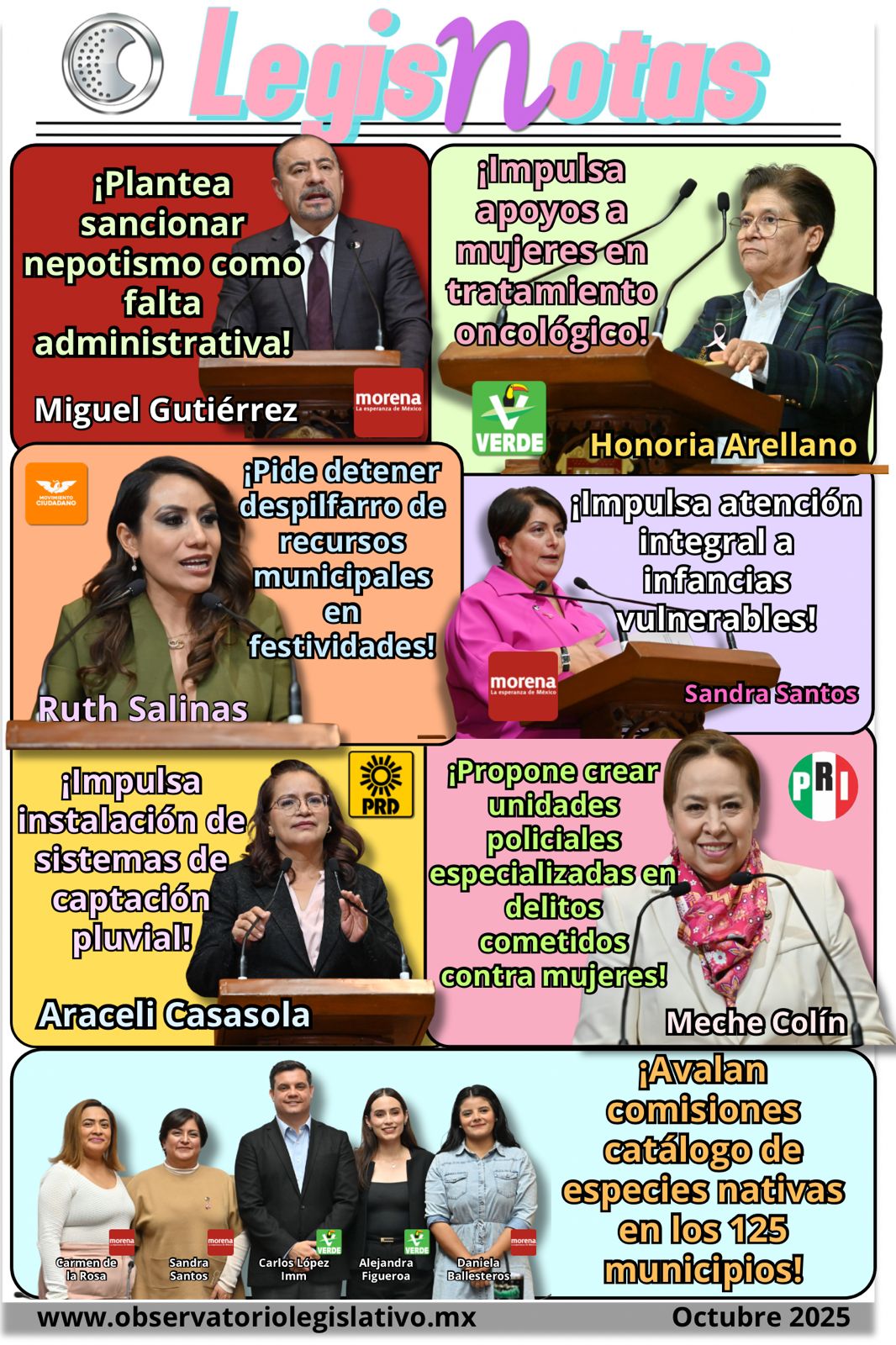 27 de octubre de 2025. ¡Plantea sancionar nepotismo como falta administrativa! Enlace: https://www.congresoedomex.gob.mx/boletin/aa506e80-75c9-4c79-acba-e86872fe4a6e ¡Impulsa apoyo a mujeres en tratamiento oncológico! Enlace: https://www.congresoedomex.gob.mx/boletin/9039451d-187d-412b-be54-78a433d888a2 ¡Pide detener despilfarro de recursos municipales en festividades! Enlace: https://www.congresoedomex.gob.mx/boletin/9c418a3d-6cac-42d6-ab1f-a0bd8eaa835d ¡Impulsa atención integral a infancias vulnerables! Enlace: https://www.congresoedomex.gob.mx/boletin/fdfbc201-a902-43ee-a5b3-4643e617744a ¡Impulsa instalación de sistemas de captación pluvial! Enlace: https://www.congresoedomex.gob.mx/boletin/213fdc44-387c-4ef3-af8a-68314f77db0e ¡Propone crear unidades policiales especializadas en …