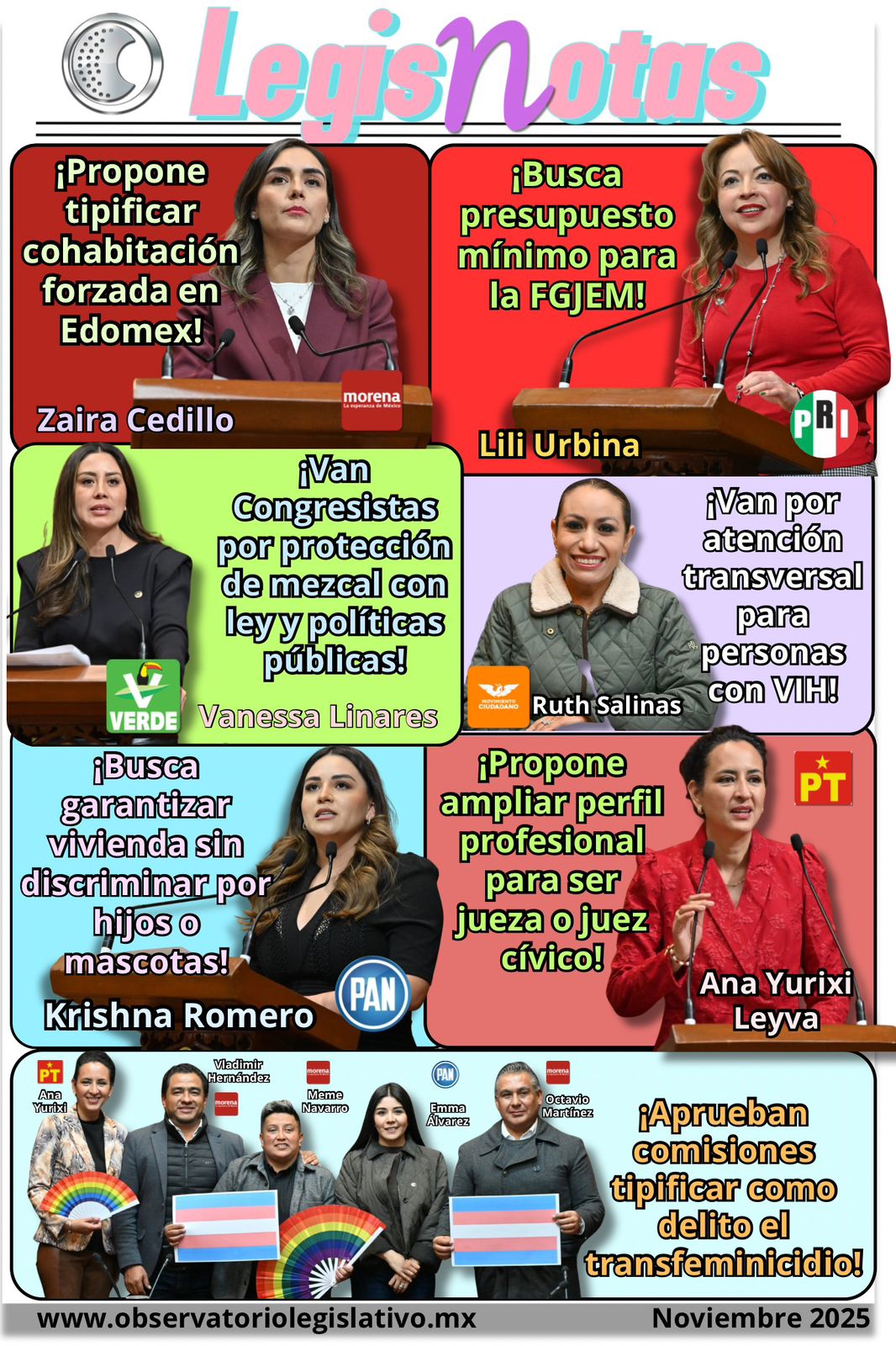 14 de noviembre de 2025. ¡Propone tipificar cohabitación forzada en Edomex! Enlace: https://www.congresoedomex.gob.mx/boletin/5f51f233-f5cb-45ff-a8d6-4ee053f1aa45 ¡Busca presupuesto mínimo para FGJEM! Enlace: https://www.congresoedomex.gob.mx/boletin/d0c8222b-5eae-44e2-a9cb-bedcbd8e752f ¡Van Congresistas por protección de mezcal con ley y políticas públicas! Enlace: https://www.congresoedomex.gob.mx/boletin/f740f8ca-0243-4dfa-9d1e-1e8b92a45e04 ¡Van por atención transversal para personas con VIH! Enlace: https://www.congresoedomex.gob.mx/boletin/945b0bf8-7773-4b45-82d0-b6ad168cee7d ¡Busca garantizar vivienda sin discriminar por hijos o mascotas! Enlace: https://www.congresoedomex.gob.mx/boletin/3db69559-a6c1-4d08-8bca-fcf48472779d ¡Propone …